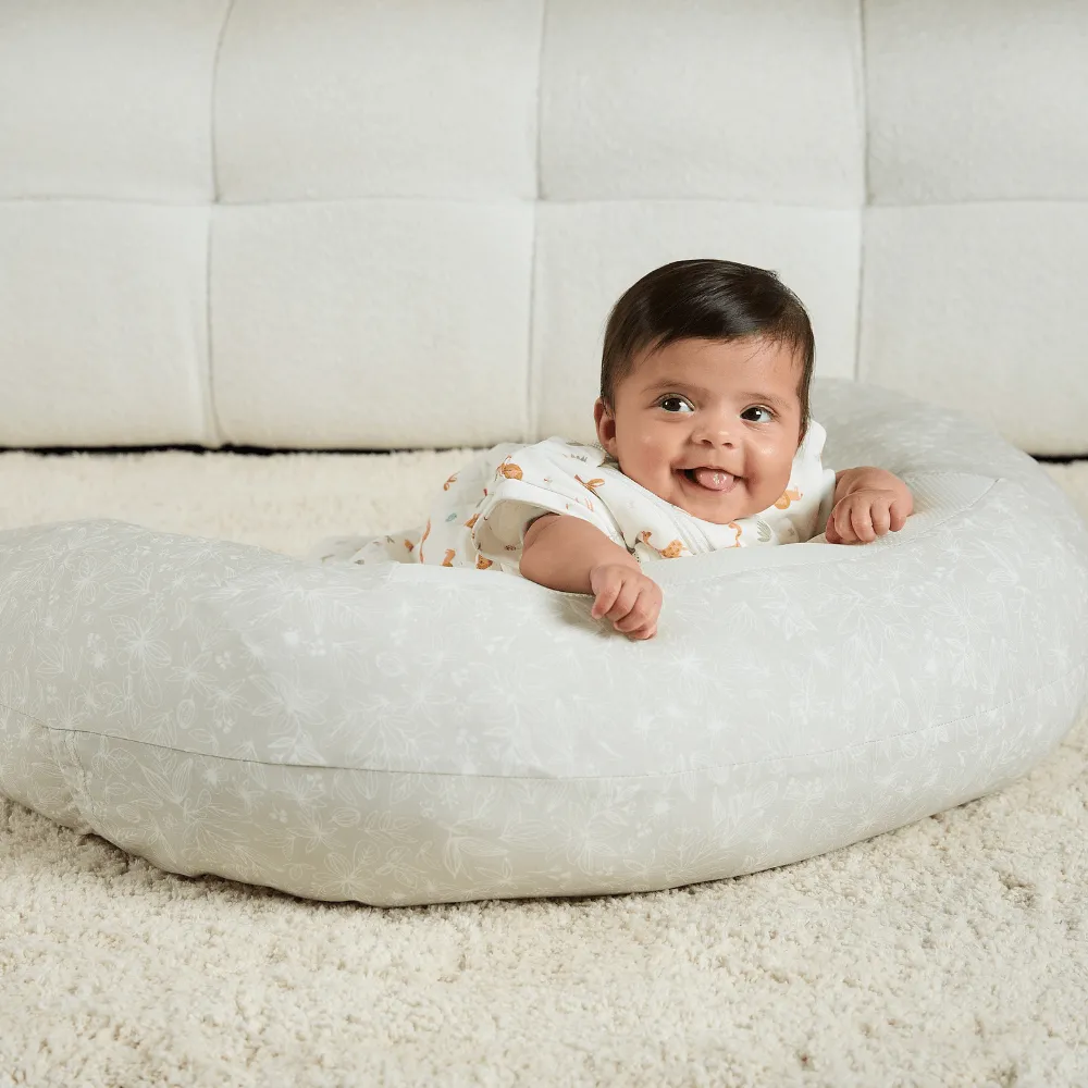 The contoured shape of the Breathe Pregnancy Pillow makes an excellent back support cushion beyond the maternity stage and feeding baby. Our pillow can also be used to help support baby during tummy time, helping baby develop strong neck and shoulder muscles and promote motor skills.